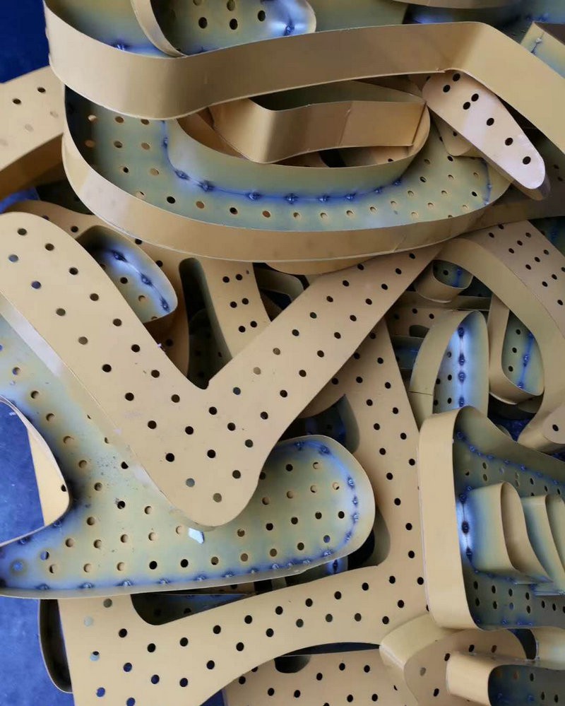 1、根據電腦字體排版對板材(鍍鋅板、不鏽鋼板、鋁板)進行線形切割;
